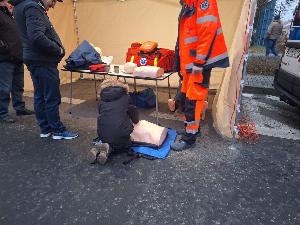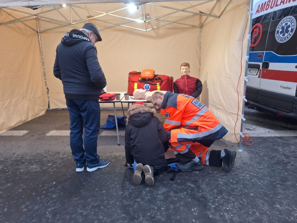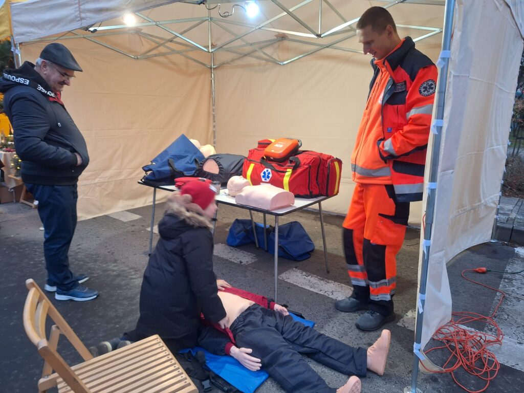 W Dniu dzisiejszym nasi współpracownicy i instruktorzy mieli okazję zabezpieczać jarmark Bożonarodzeniowy jak również przekazywać osobą zainteresowanym jak udzielać pierwszej pomocy osobie w NZK z wykorzystaniem AED. Zainteresowanie udzielaniem pierwszej pomocy było bardzo duże